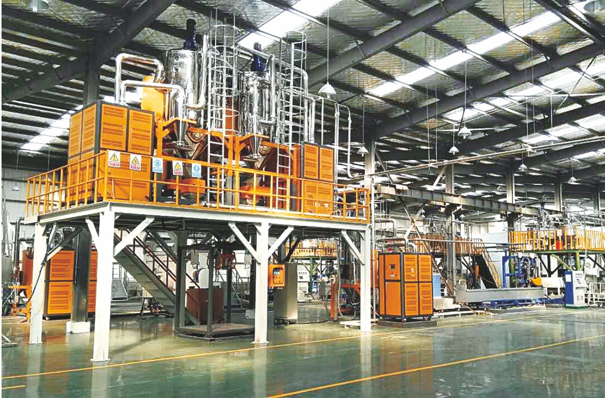 大型戶外料罐的數量取決于常用的塑料原料及回收料的種類(用量少的原料無須存入大型料罐,待用時可直接抽人干燥料罐使用),其尺寸根據原料消耗量和儲備量而定,一般可考慮儲備供12周的生產消耗量。大型料罐的制作材料采用不銹鋼或鋁鎂合金,美觀又無須定期上漆防銹。