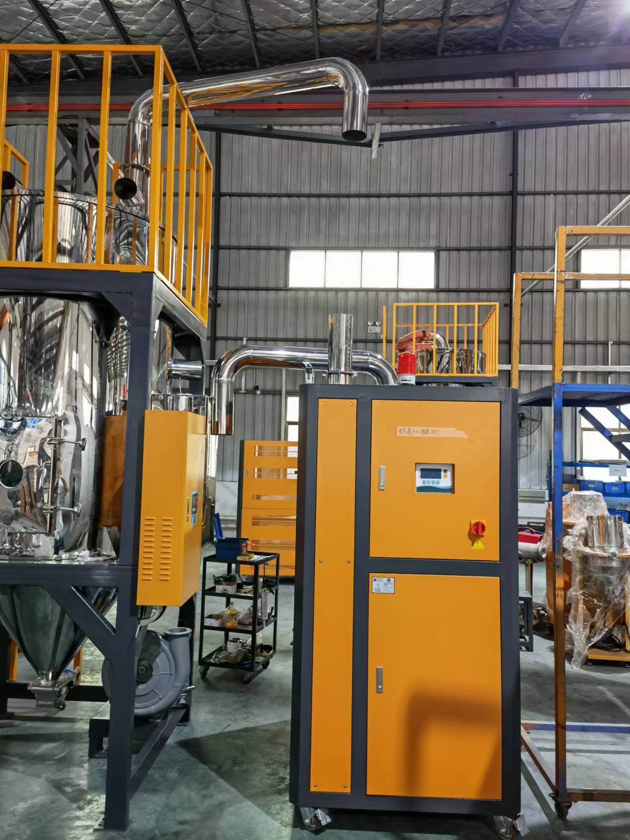 2. 干燥機:通常采用烘箱式干燥器,其內部包含一個加熱器和一個循環風扇,利用加熱器增加空氣溫度,從而使潮濕的物料變得干燥,循環風扇將干燥的空氣循環供給至塑料粒子的吹氣管。